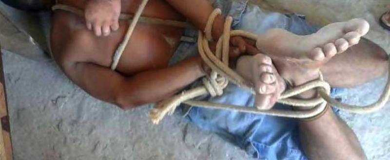 Moradores amarram homem por perturbar mulheres e descobrem que é foragido