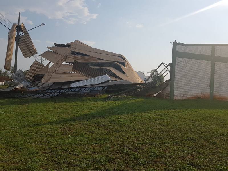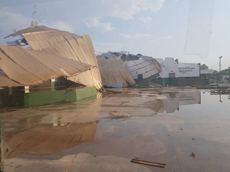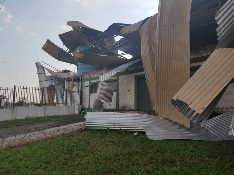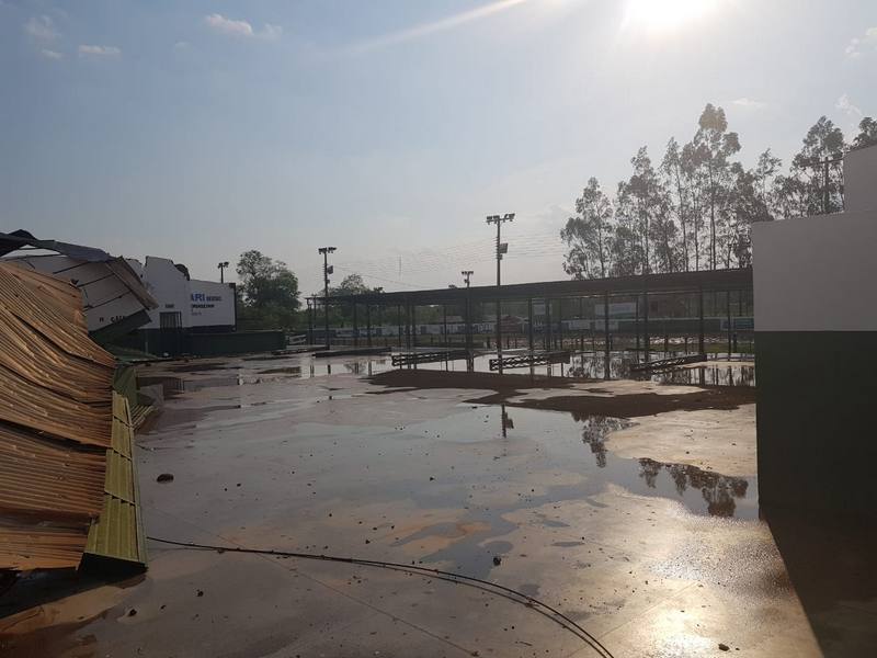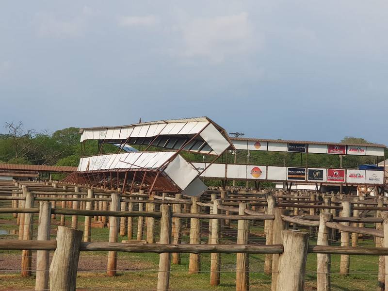 De acordo com o site Bela Vista News, forte ventania destelhou casas e tamb�m o Clube de La�o do munic�pio. O espa�o � utilizado para leil�es e outros eventos. Placas tamb�m foram arremessadas.