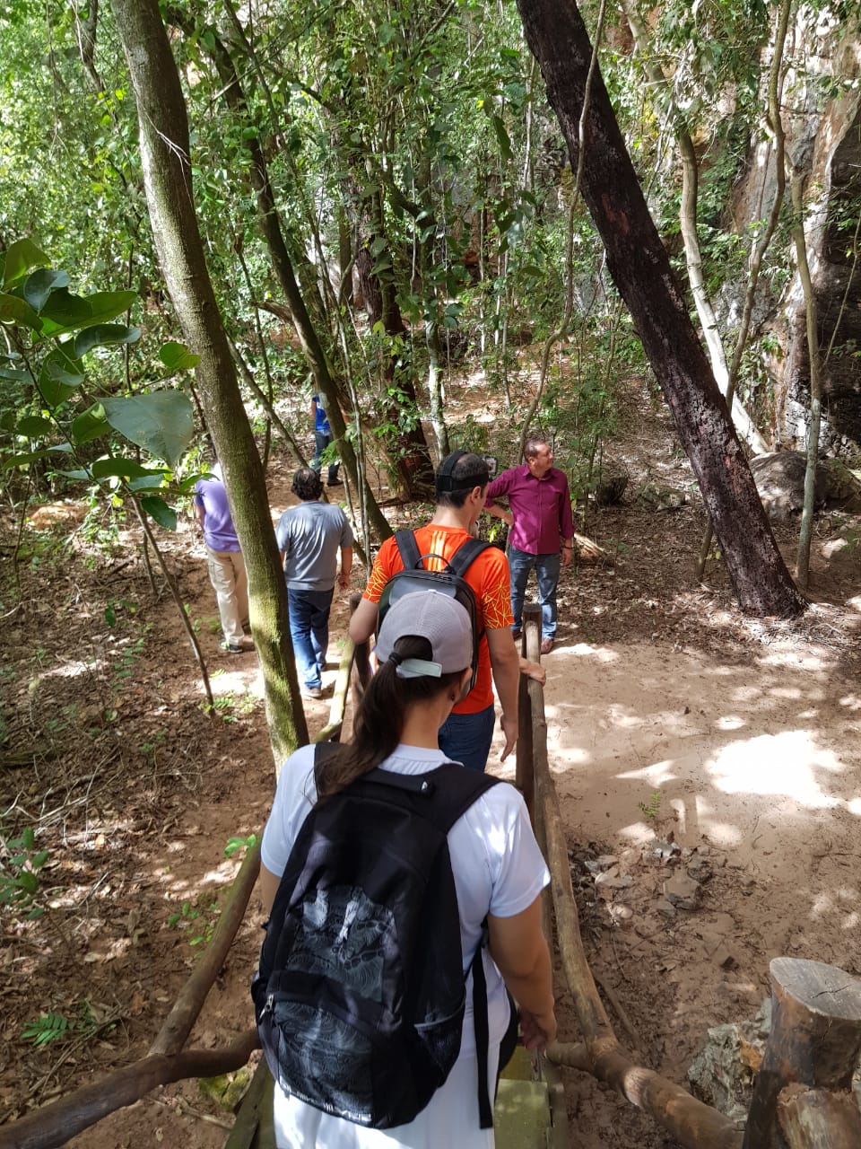 O grupo foi recepcionado pelo prefeito de Alcin�polis, Dalmy Cris�stomo da Silva, e pela secret�ria municipal de Desenvolvimento, Bruna Barbosa, que, na companhia do Secret�rio da Ag�ncia de Desenvolvimento Cerrado-Pantanal/MS (ACEPAN), Edilson Cotonete, que tamb�m � propriet�rio do Hotel Nunes, encaminhou os visitantes ao Parque Natural Municipal Templo dos Pilares.