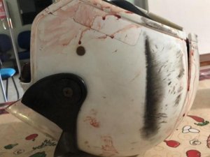 | Capacete ficou destru�do ap�s o acidente �Pol�cia Civil/Divulga��o |
