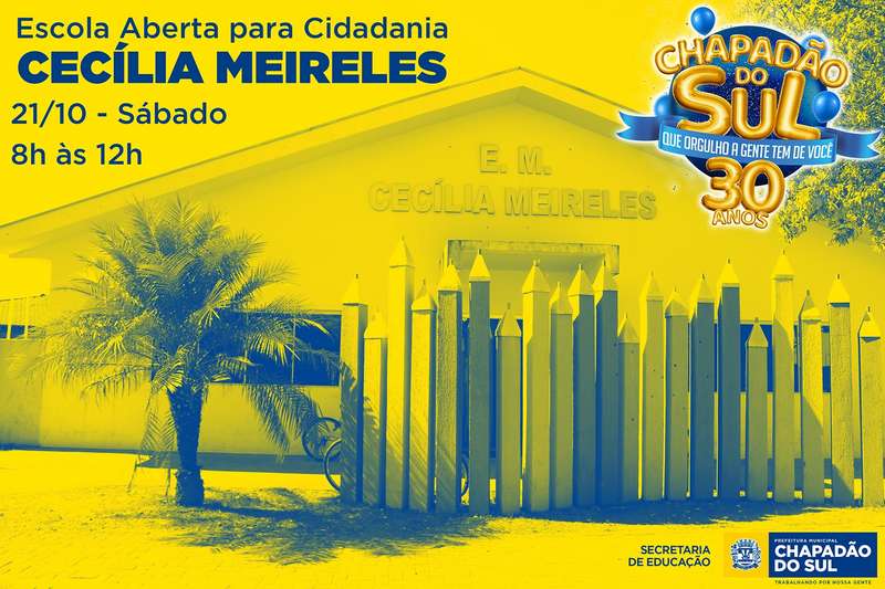 A Prefeitura de Chapad�o do Sul, atrav�s da Secretaria de Educa��o, lan�a o Projeto Escola Aberta para a Cidadania, que acontecer� neste s�bado, 21, na Escola Cec�lia Meireles, com in�cio �s 8h e encerramento as 12h, sustentando na necessidade da inser��o da escola e da fam�lia para �al�m dos seus muros�, pois grandes discuss�es se pautam na constante necessidade de a escola ter a fam�lia como parte fundamental do processo ensino-aprendizagem. O evento faz parte do calend�rio oficial em comemora��o aos 30 anos de Chapad�o do Sul.
