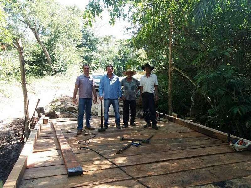 Al�m da constru��o desta ponte, que mede pouco mais de cinco metr�s, e manuten��o de outras pontes localizadas em diversas regi�es do munic�pio, a prefeitura de Alcin�polis est� trabalhando na manuten��o das estradas vicinais garantindo o transporte escolar, bem como locomo��o de moradores e produtores rurais.