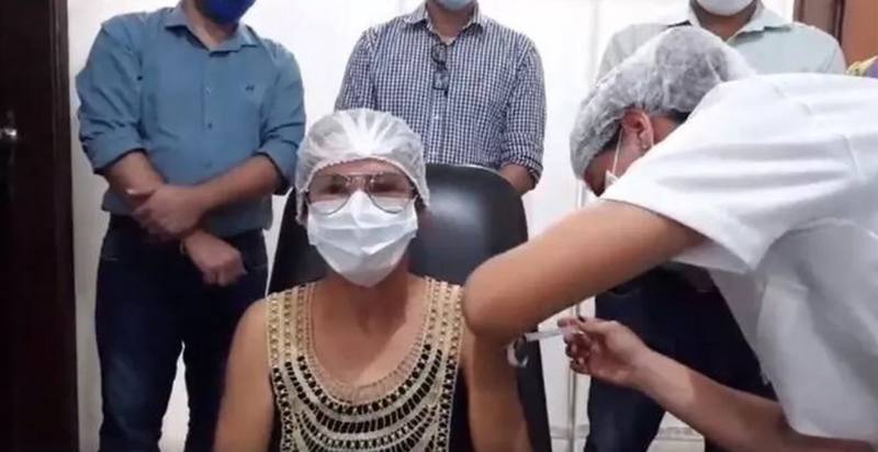 A t�cnica de enfermagem, Alair de Souza, de 54 anos, que trabalha em uma unidade de sa�de de Camapu�, a 140 km de Campo Grande, foi a primeira pessoa a ser imunizada contra a Clovid-19 no munic�pio. A vacina��o ocorreu na manh� desta ter�a-feira (19).