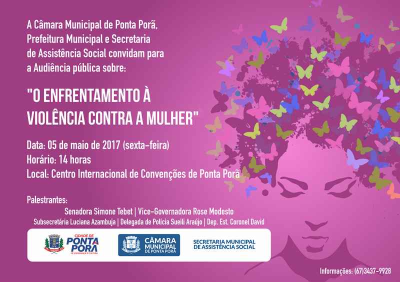 PONTA PORÃ| Câmara convida para audiência pública sobre violência contra a mulher