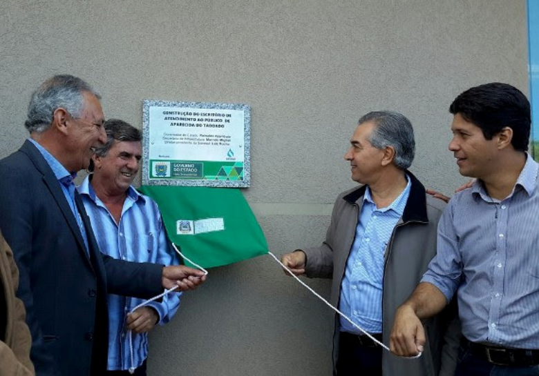 O governador Reinado Azambuja e o diretor-presidente da Sanesul, Luiz Rocha, inauguraram na manh� desta quinta-feira (28) o escrit�rio de atendimento ao p�blico da Empresa em Aparecida do Taboado. Al�m disso, o governador e o diretor-presidente da Empresa visitaram o novo po�o perfurado pela Sanesul, que aumentou a capacidade de abastecimento de �gua para 150 mil litros de �gua por hora, atendendo a demanda de abastecimento na cidade. O po�o est� ativado parcialmente, e assim que for ativado por completo, ter� capacidade de produ��o de 434 mil litros de �gua por hora.