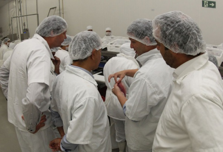 Autoridades visitaram as instala��es do frigor�fico. (Foto: Chico Ribeiro/Not�cias MS) |