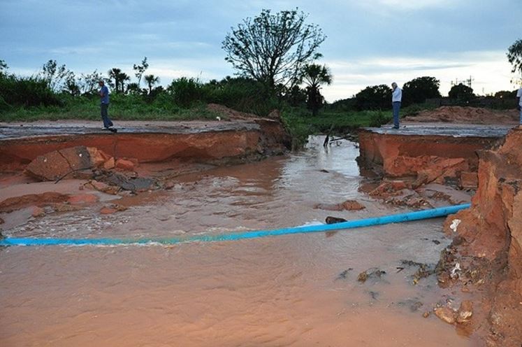 | A chuva forte causou danos em v�rias ruas do munic�pio. (Foto: Alcin�polis.com/ Divulga��o) |