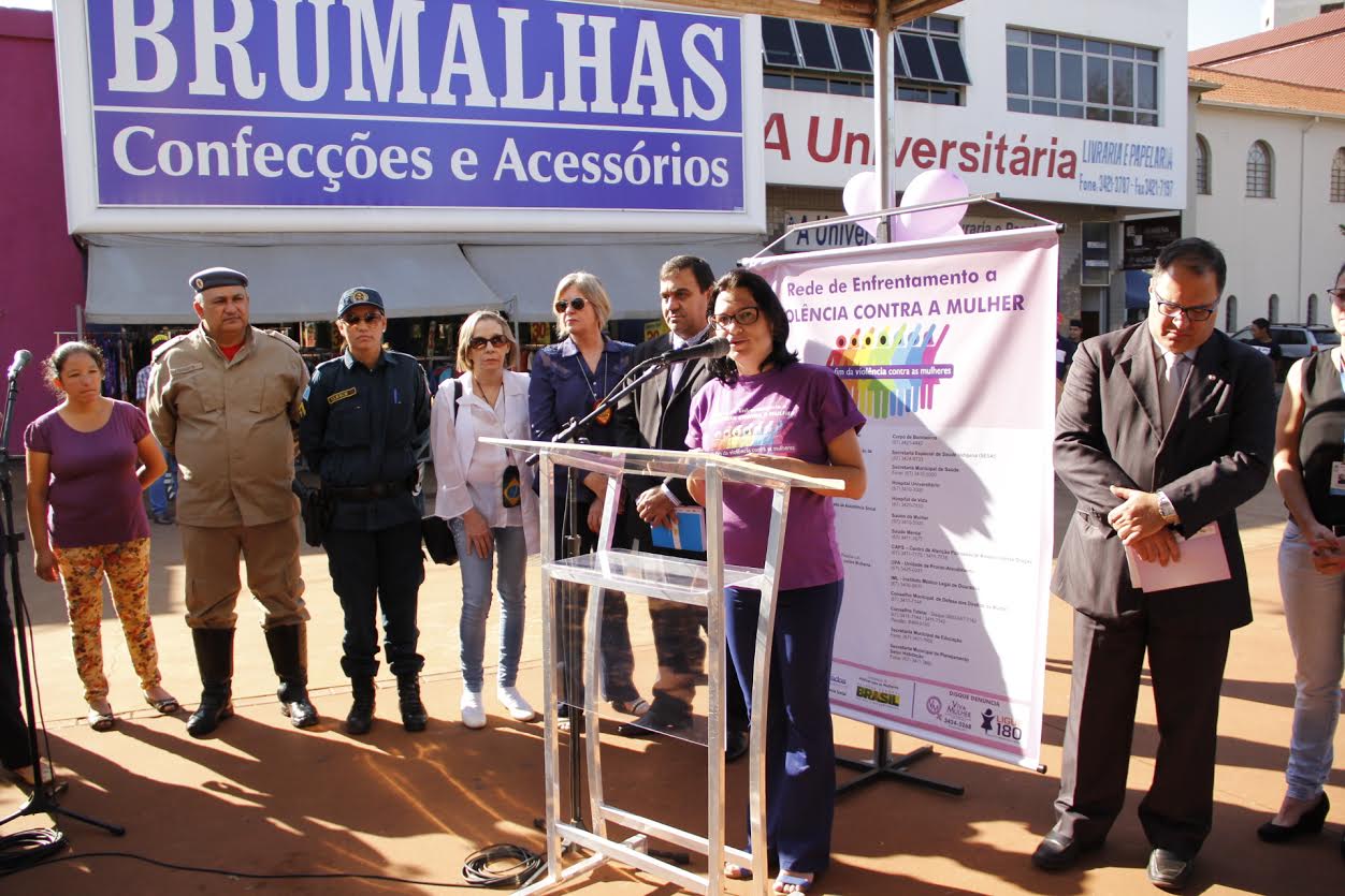 A atua��o da Prefeitura de Dourados no combate � viol�ncia contra a mulher foi destaque durante a��o realizada na pra�a Ant�nio Jo�o na manh� desta sexta-feira (7). O evento organizado pelo munic�pio atrav�s da Coordenadoria de Pol�ticas P�blicas para Mulheres em parceria com os �rg�os da Rede de Enfrentamento � Viol�ncia Contra a Mulher, em alus�o aos nove anos de san��o da Lei Maria da Penha, levou conscientiza��o �s mulheres.