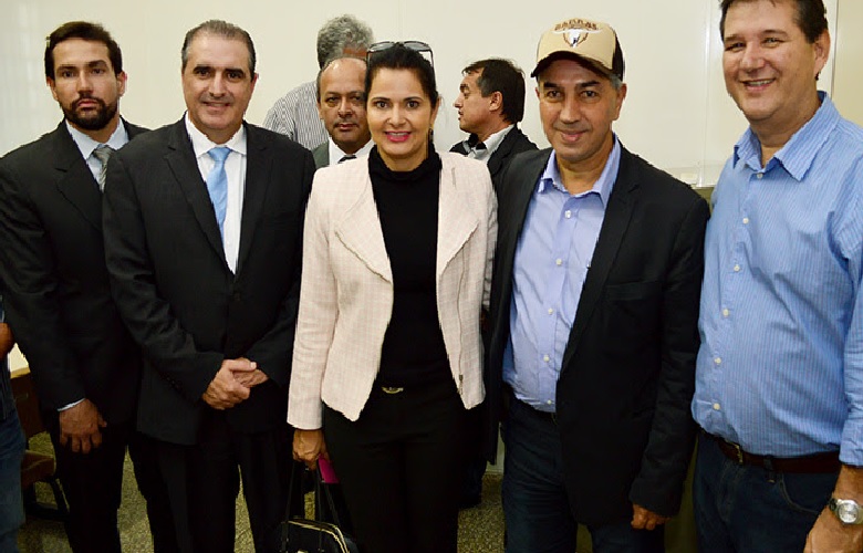 | Delegados F�bio Per� e Roberval Cardoso Rodrigues, presidente do SR Coxim, Terezinha Candido, governador de MS, Reinaldo Azambuja e diretor-secret�rio da Famasul, Ruy Fachini |