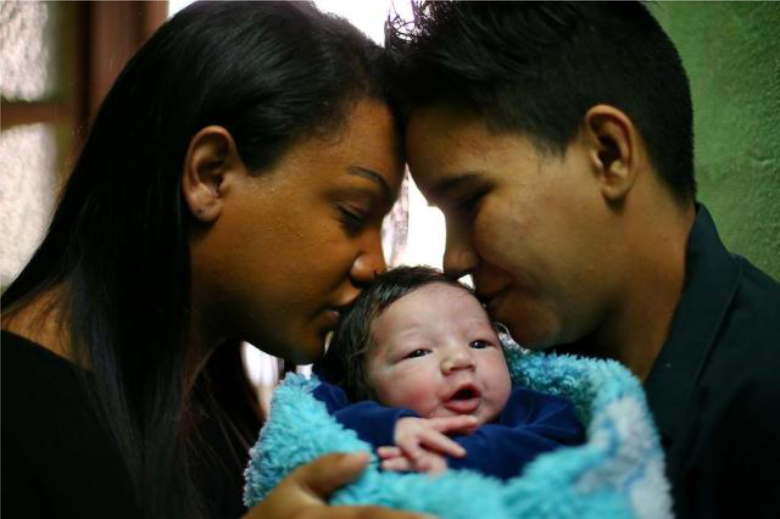 Enquanto Anderson Cunha, de 21 anos, amamenta o beb� Greg�rio, a m�e, Helena Freitas, 26 anos, olha emocionada para o filho. O casal transexual teve a crian�a na �ltima ter�a-feira (7), no Hospital F�mina, em Porto Alegre, realizando um sonho de ambos que pode se concretizar gra�as � rela��o iniciada em 2013. A hist�ria foi noticiada pelo jornal Zero Hora.