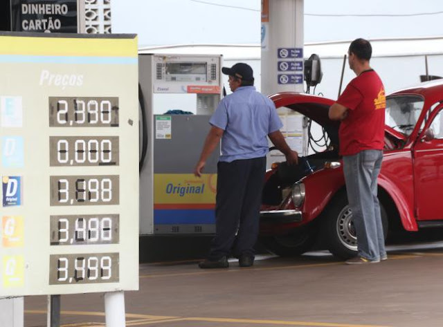 Al�m das diferentes op��es de pagamento e do aux�lio de brindes, agora, os empres�rios est�o reduzindo o valor do combust�vel, mesmo que isso possa arriscar o or�amento no fim do m�s. Jhonatan Vieira, gerente de um posto na regi�o leste da cidade, conta que desde segunda-feira (25) o valor do litro do combust�vel foi reduzido no posto que administra. E a redu��o n�o tem nada a ver com diminui��o dos impostos sobre a gasolina.
