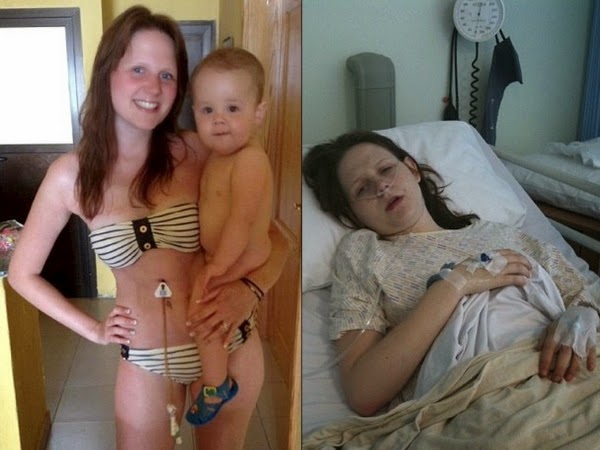 Nichols, m�e de duas crian�as, teve de largar seu emprego como administradora por conta da doen�a debilitante. Ela perdeu 12kg em apenas tr�s meses.