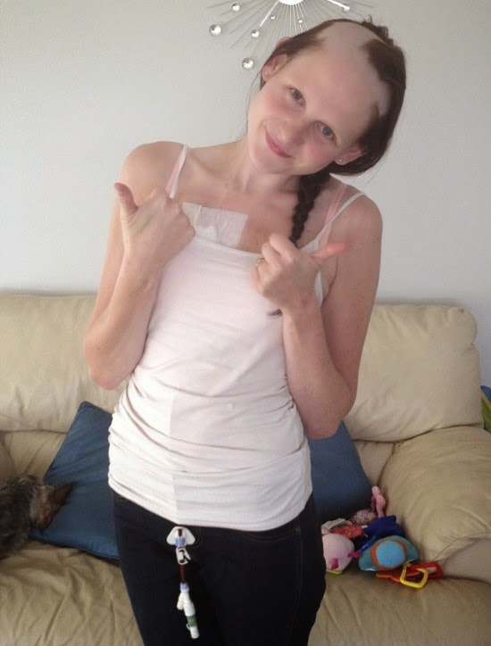 A doen�a deixou Nichols em cadeira de rodas, al�m de come�ar a perder seu cabelo por falta de nutrientes adequados. �Um efeito colateral do TPN � que seu cabelo pode ficar muito fino e cair. � terr�vel para uma mulher ter que passar por isso, mas meu marido me ajudou, tamb�m raspando seu cabelo, comigo�, disse.