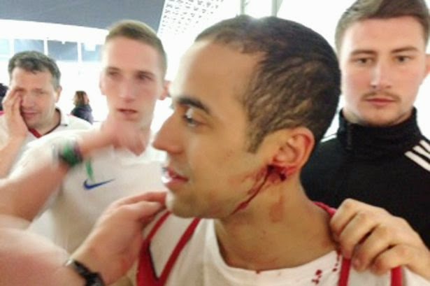 Ainda de acordo com o tabloide, uma testemunha contou que viu o momento em que um torcedor ingl�s atacou Farquharson e mordeu sua orelha.