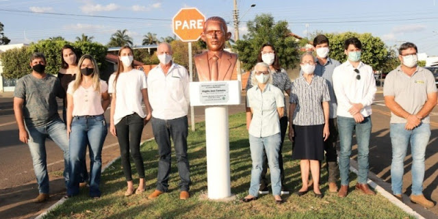 Na tarde de ontem (31/08) o Prefeito Dalmy Cris�stomo da Silva, juntamente com o Vice-prefeito Valter Roniz, o Secret�rio de Assist�ncia Social, Alo�sio Martins, o Secret�rio de Sa�de, Jo�o Abadio, a Secret�ria de Desenvolvimento, Bruna Barbosa, a Secret�ria de Administra��o e Finan�as, C�lia Furtado e o Secret�rio de Obras, Fernando Nicoletti e os vereadores �ngelo do Nicola, Ademir Muller, Helder Carneiro e Onilza Matias participaram da inaugura��o do Busto do Sr. Virg�lio Jos� Carneiro. Estiveram presentes ainda filhos (as), netos (as) e outros familiares do homenageado. O Busto de Virg�lio fica localizado na Avenida que leva seu nome, pr�ximo ao Sindicato rural.