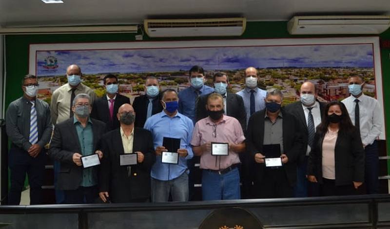 Em sess�o realizada na noite da �ltima segunda-feira (5), a C�mara de Vereadores de Caarap� homenageou cinco comunicadores considerados os pioneiros da comunica��o no munic�pio. Foram agraciados com a comenda os radialistas Ant�nio Borges, Donizette Rojas e Adair Terra e os jornalistas Dilermano Alves e Miguel Vasconcellos Filho. A homenagem decorreu de Mo��o de Congratula��es assinada por todos os vereadores, datada de 15 de mar�o deste ano, aprovada com o objetivo de homenagear os primeiros comunicadores do r�dio no munic�pio de Caarap� � respons�veis por levar informa��o e entretenimento a muitas fam�lias.