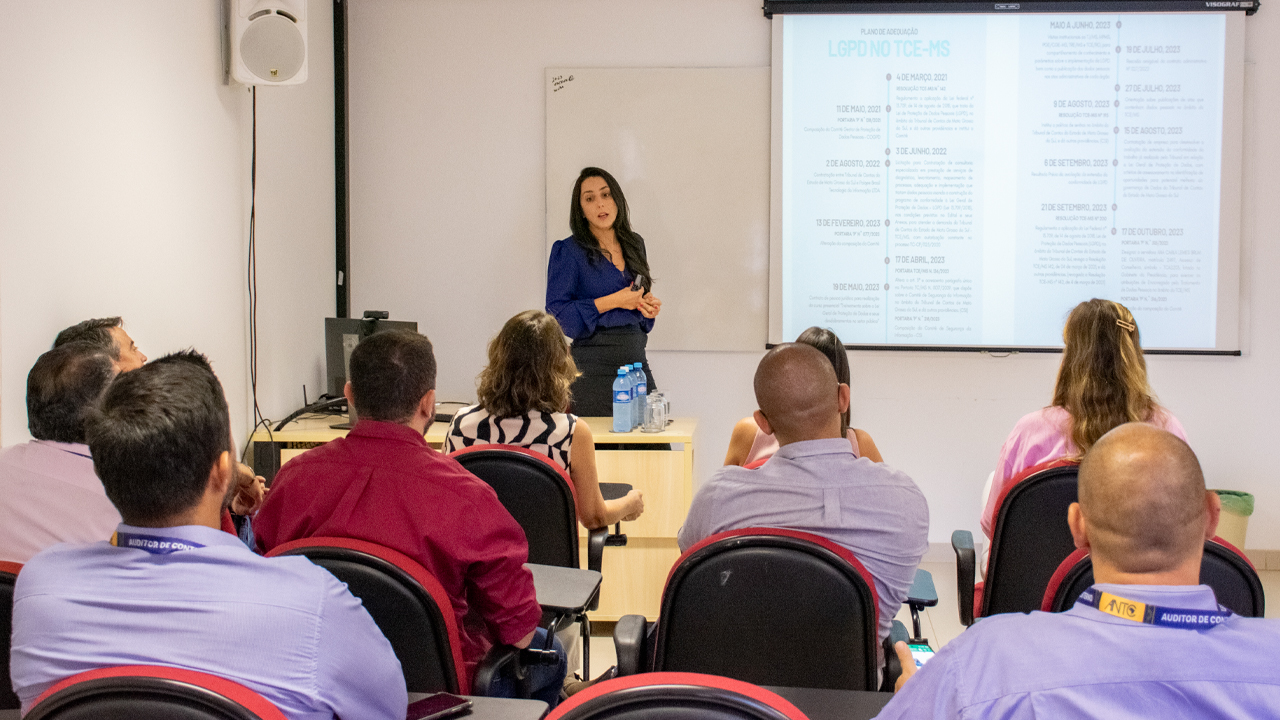 A coordenadora encarregada do Comitê Gestor, Ana Carla Lemes Brum, apresentou as ações desenvolvidas ao longo do ano de 2023 para sanar as fragilidades detectadas e também o novo portal, onde estão concentradas as ações do TCE-MS de adequação à lei. Ana Carla ressaltou que a lei é um marco regulatório e permite uma releitura do princípio da privacidade, estabelecendo um rol de direitos e obrigações para os órgãos e entidades públicas e privadas que irão demandar a implantação de programa de proteção de dados pessoais.