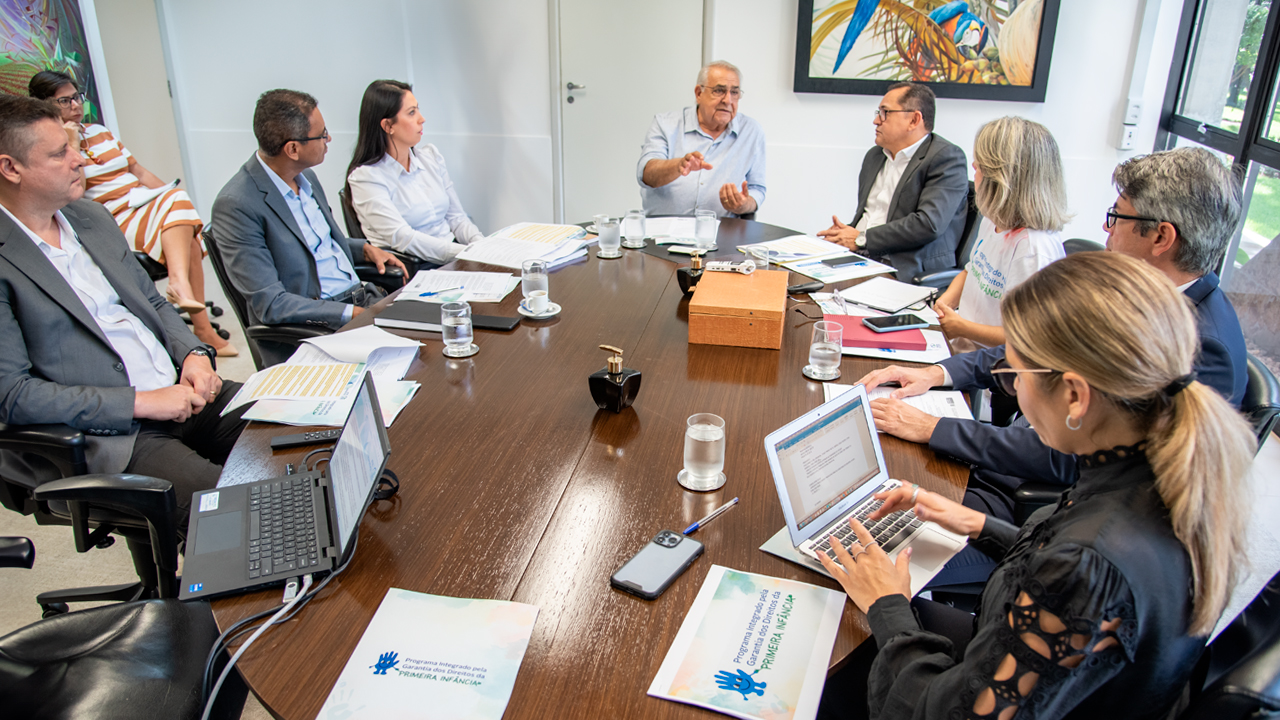 Integrantes do Comitê Intersetorial de Trabalho do Programa Integrado pela Garantia dos Direitos da Primeira Infância do TCE-MS se reuniram na manhã desta terça-feira, 27 de fevereiro, com o presidente da Corte de Contas, conselheiro Jerson Domingos, para apresentar os resultados das ações de 2023 e o planejamento para 2024.