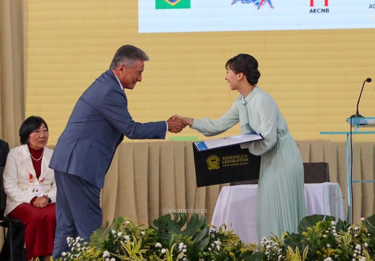Ainda na Associação e em agradecimento à sua vinda, o deputado estadual Roberto Hashioka (União Brasil) entregou à princesa Kako o Diploma de Ilustre Visitante, concedido pela Assembleia Legislativa aos cidadãos e autoridades estrangeiras ou oriundas de outros Estados, bem como convidados em missão oficial no Estado.