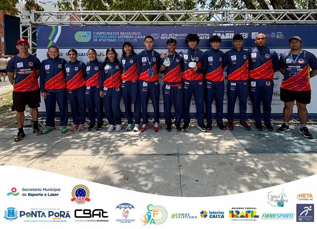 A cidade de Ponta Porã brilhou no cenário nacional do atletismo com a participação da equipe da Associação Pontaporanense Esporte é Vida (APEV) no Campeonato Brasileiro Interclubes de Atletismo Sub-20, realizado entre os dias 5 e 7 de setembro, em Recife (PE). O time, composto por 12 atletas seis no feminino e seis no masculino conquistou dois grandes resultados: duas medalhas de prata, além de diversas colocações de destaque.