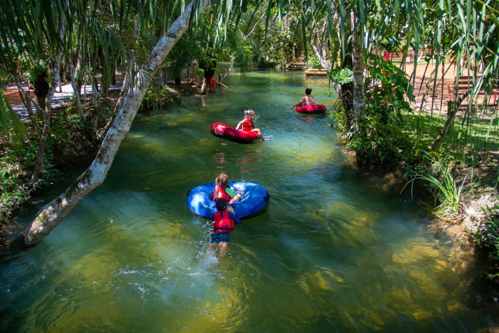Às margens do Rio Formoso, o atrativo oferece oito pontos de banho em águas cristalinas, atividades como tirolesa, caiaque, stand up paddle, trampolim, boia-cross e mergulho com cilindro. Trilhas ecológicas, decks e pergolados privativos garantem conforto e contato direto com a natureza para todas as idades.