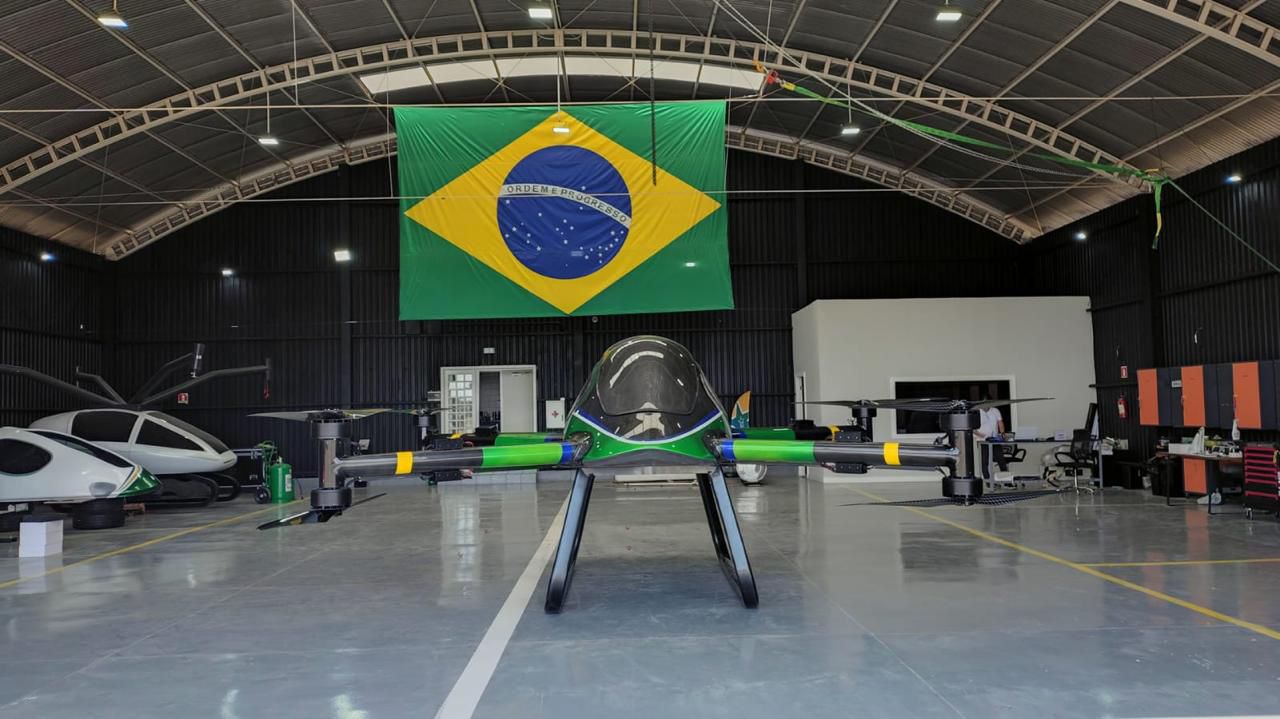 Urandir Fernandes Zigurats acompanha o primeiro voo do Skyros, o primeiro eVTOL agrícola 100% brasileiro, no Recanto Havalon.