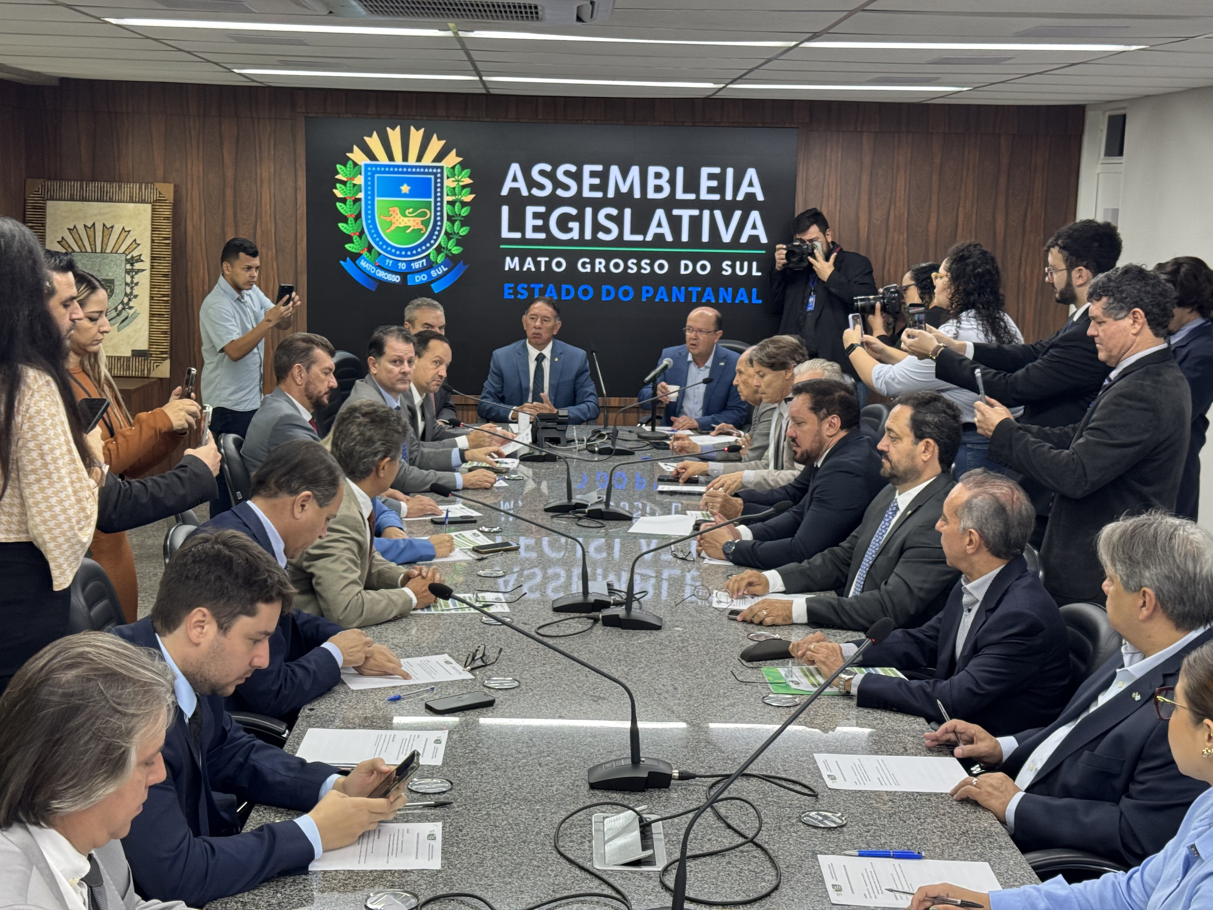O presidente da Assembleia Legislativa de Mato Grosso do Sul (ALEMS), deputado Gerson Claro (PP), participou nesta terça-feira (18) da reunião que apresentou o cronograma de execução das emendas parlamentares para 2026. Os valores somam R$ 96 milhões, sendo R$ 4 milhões destinados a cada parlamentar. O encontro também contou com a presença do vice-governador José Carlos Barbosa, do secretário da Casa Civil, Walter Carneiro, e de parlamentares estaduais, reforçando o compromisso da Casa de Leis com a transparência e a finalidade social desses recursos.