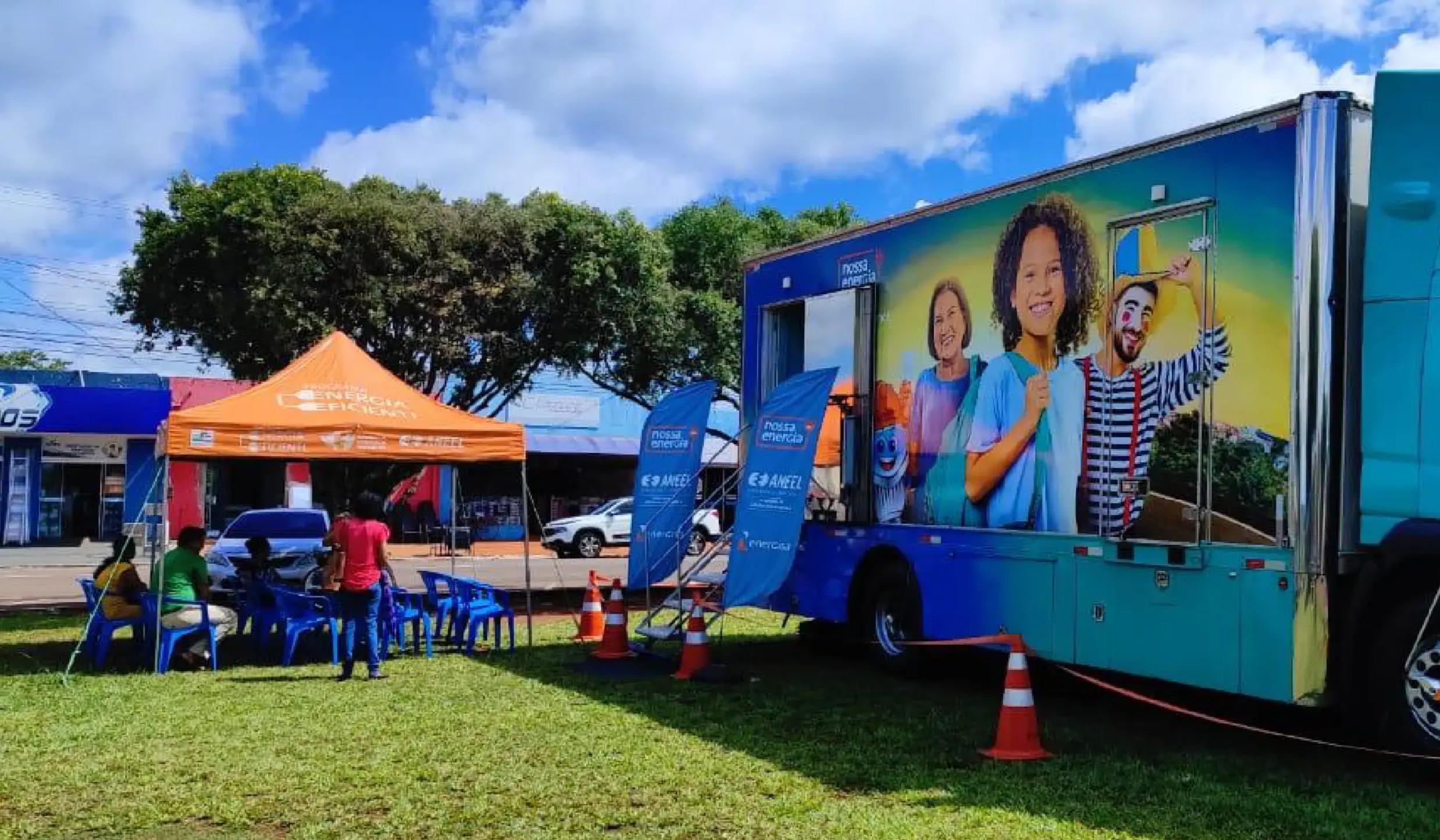 Unidade móvel do projeto Nossa Energia durante atividades em comunidades