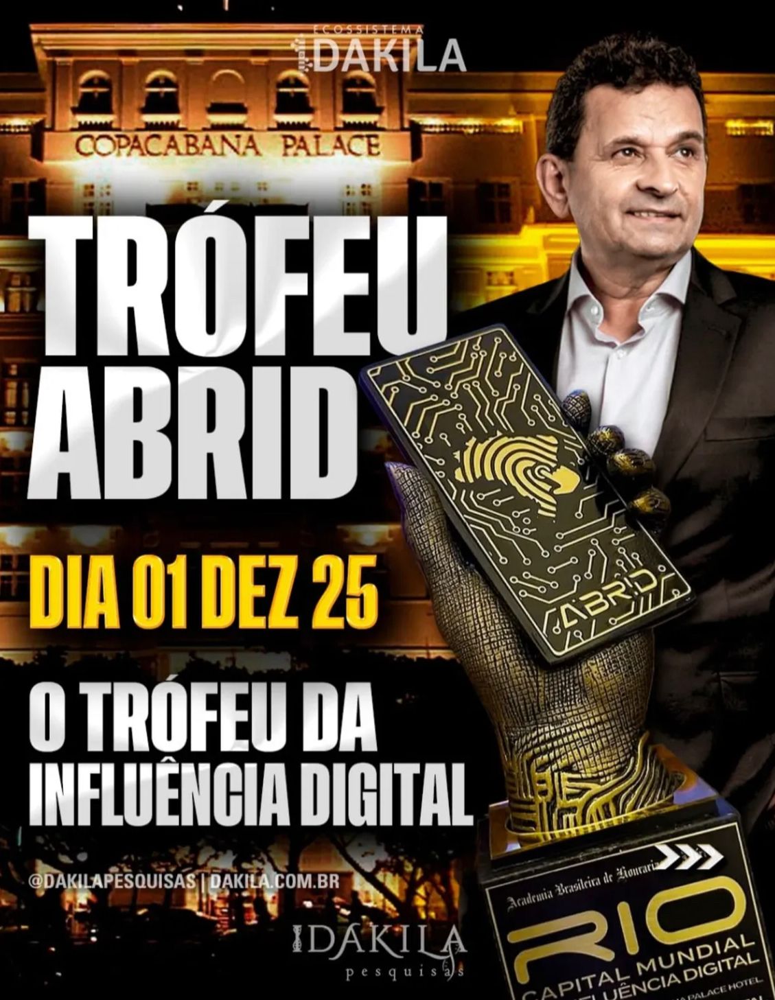 O Rio de Janeiro se prepara para uma noite que promete marcar a cena da influência digital no país. No dia 1º de dezembro, às 19h (GMT-3), será realizada a entrega do Trófeu ABRID – O Trófeu da Influência Digital, durante a programação do Rio 2025 – Capital Mundial da Influência Digital. O evento acontece nos salões do Copacabana Palace, em formato de gala, reunindo grandes influenciadores e empreendedores digitais brasileiros.