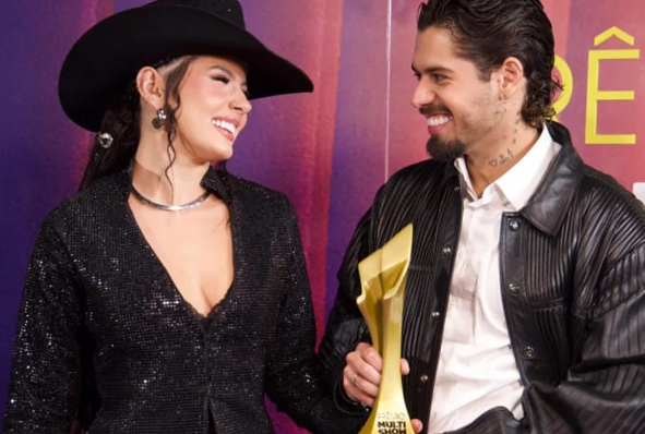 Ana Castela e Zé Felipe seguem colecionando conquistas na carreira. O casal, que assumiu o namoro há pouco mais de um mês, venceu o Prêmio Multishow na categoria Clipe do Ano com “Sua Boca Mente (You’re Still The One)”. A dupla também levou o troféu de Clipe TVZ do Ano, única categoria decidida exclusivamente pelo público.