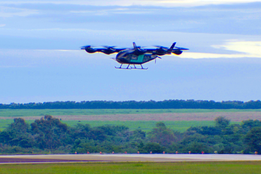 Protótipo do eVTOL da Eve Air Mobility realizou voo inaugural sem tripulação em Gavião Peixoto, no interior de São Paulo. © Paola Ayala/Eve Air Mobility