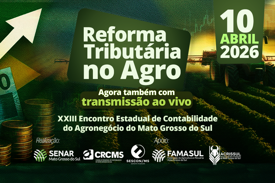 As vagas para participação presencial estão esgotadas, o que reforça o interesse do setor produtivo pelo tema. O evento, no entanto, será mantido normalmente no formato presencial, das 8h às 16h, no Tatersal II da Associação dos Criadores de Mato Grosso do Sul, em Campo Grande, e também contará com transmissão ao vivo pelos canais do YouTube do Sistema Federação da Agricultura e Pecuária de Mato Grosso do Sul e do Conselho Regional de Contabilidade de Mato Grosso do Sul.
