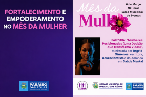 Mês da Mulher: Prefeitura de Paraíso das Águas promove palestra especial para todas as mulheres do município