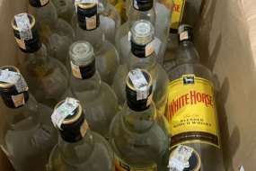 Polícia apreende 900 kg de garrafas vazias usadas para falsificar uísque em Campo Grande
