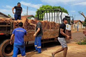 Prefeitura distribui carregamento de telhas para famílias atingidas por vendaval